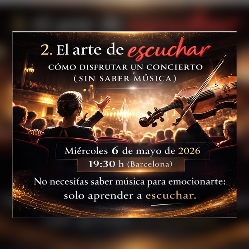 Una charla práctica y reveladora para aprender a disfrutar más intensamente de cualquier concierto. Sin tecnicismos ni barreras, exploraremos claves sencillas que permiten escuchar con mayor libertad, atención y placer. Después de esta sesión, sentarse en un auditorio ya no será lo mismo.