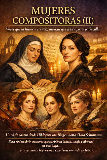 Charla para redescubrir a compositoras que la historia dejó en sombra, desde Hildegard von Bingen hasta Clara Schumann, cuyas obras desafían el silencio impuesto por su época. A través de audiciones comentadas, anécdotas y contexto histórico, se revela un legado musical lleno de talento, coraje y sensibilidad. Un viaje para escuchar la historia con otros oídos y devolver voz a quienes compusieron, muchas veces, en voz baja.
